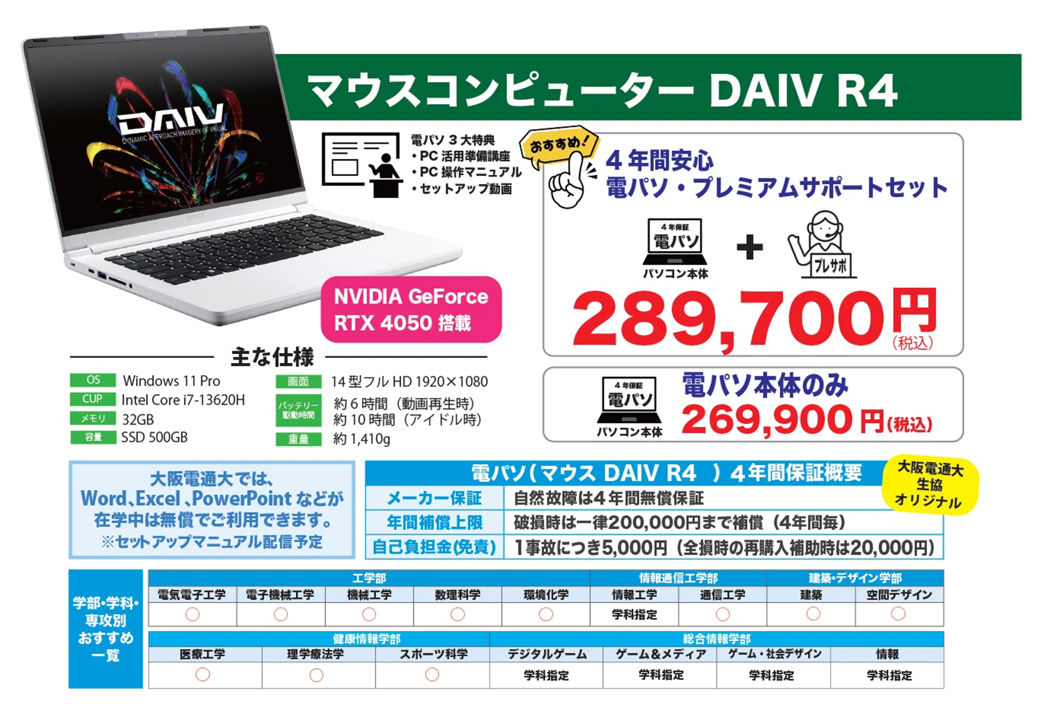 大阪電気通信大学は全学部ノートパソコン必携です。